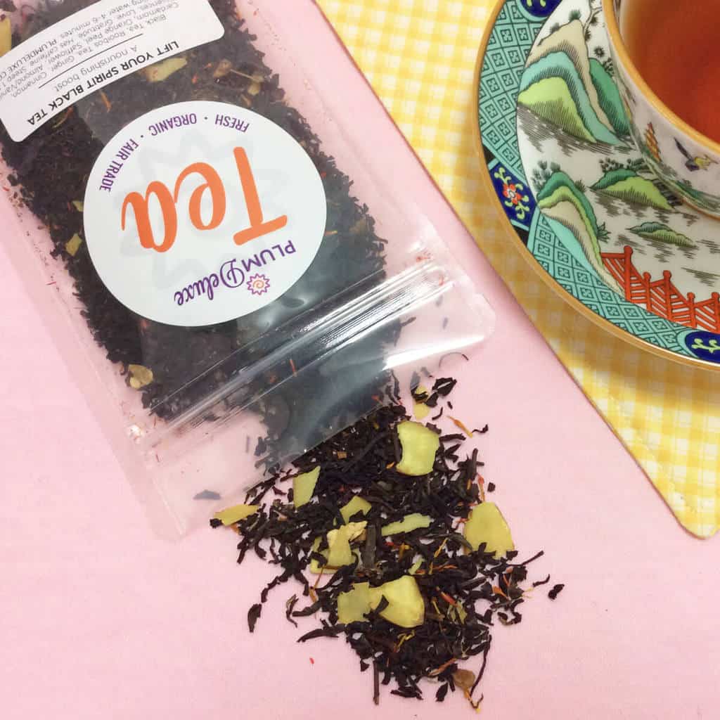 Get organic, non-GMO, Fair Trade tea through Plum Deluxe Tea of the Month Club. Each month Plum Deluxe sends a hand-blend, fresh, special limited-edition tea for tea club members only. One of the brand's signature blends, Oregon Black Breakfast Tea, featured below, is made with black and honeybush tea, orange peels, and hazelnut essence, which offers anti-inflammatory and anti-oxidant benefits. This unique tea blend offers balanced tastes with deep, mellow, citrus, and nutty flavors from the black tea, honeybush, orange peels, and hazelnut essence, respectively. Plum Deluxe tea blends are blended by hand in Portland, Oregon, and make a perfect American made gift for the tea lover.